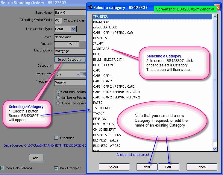 or double click to Edit in the initial screen of Program BS423 Screenshot BS423S01