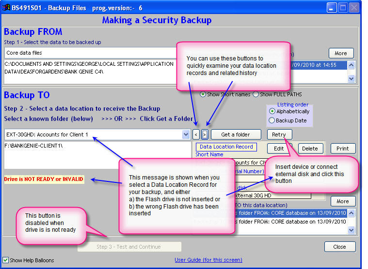 Many screens in Bank Genie deliver help in the form of Help Balloons